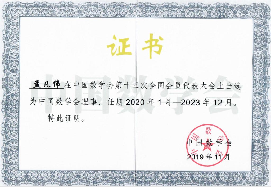 我校孟凡伟教授当选为中国数学会第十三届理事会理事