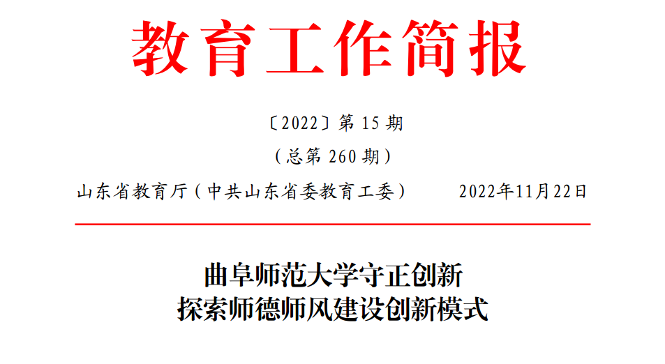 全省教育工作简报专题推介曲阜师大创新师德师风建设典型经验