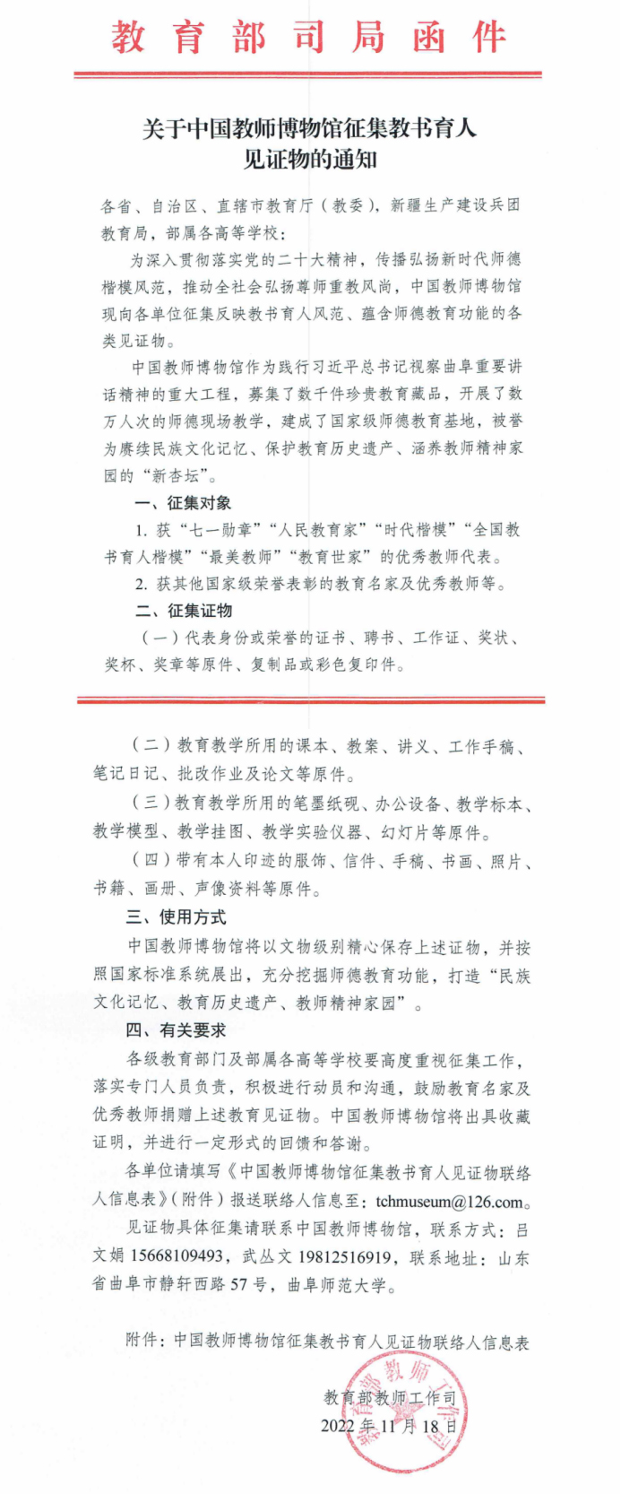曲阜师大新闻中心讯(通讯员:徐秀 编辑:刘萌 责编:李文振) 11月18日,教育部教师工作司向全国各省级教育部门及部属高校发出《关于教师博物馆征集教书育人见证物的通知》,要求各地从深入贯彻落实党...