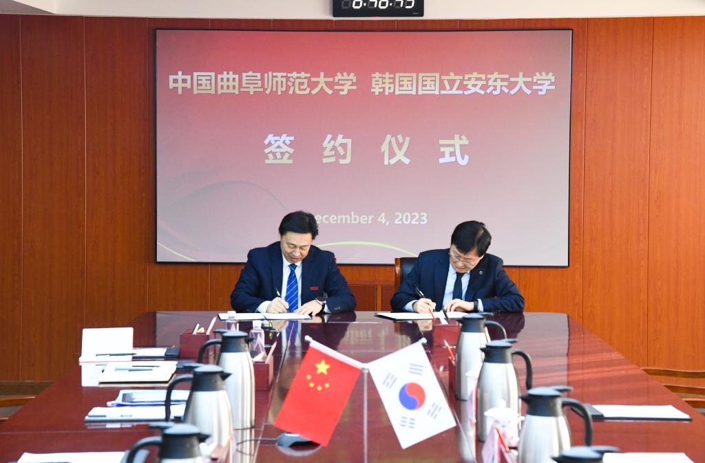 曲阜师大国际交流合作处讯 12月4日至6日,韩国国立安东大学校长郑泰柱、计划处处长李爀载、招生处处长兼孔子学院韩方院长金炳圭一行三人来校交流访问,孔子学院中方院长王秀卿陪同。校长张洪海会见来宾并...