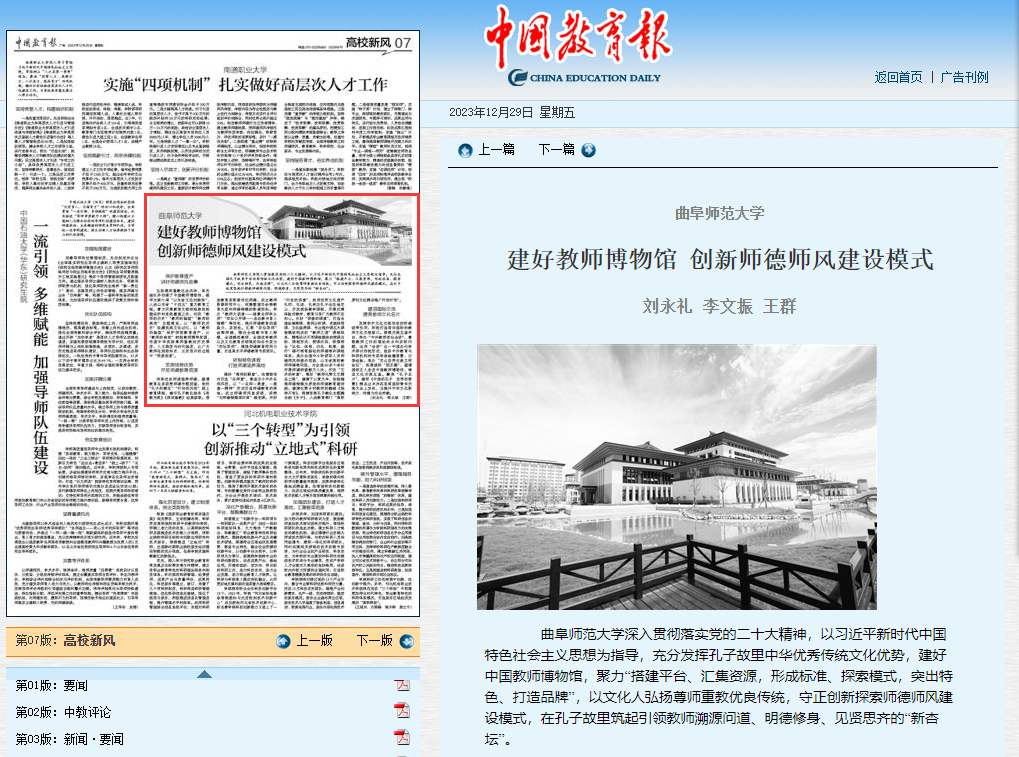 《中国教育报》刊文报道华体会官方网建好教师博物馆 创新师德师风建设模式