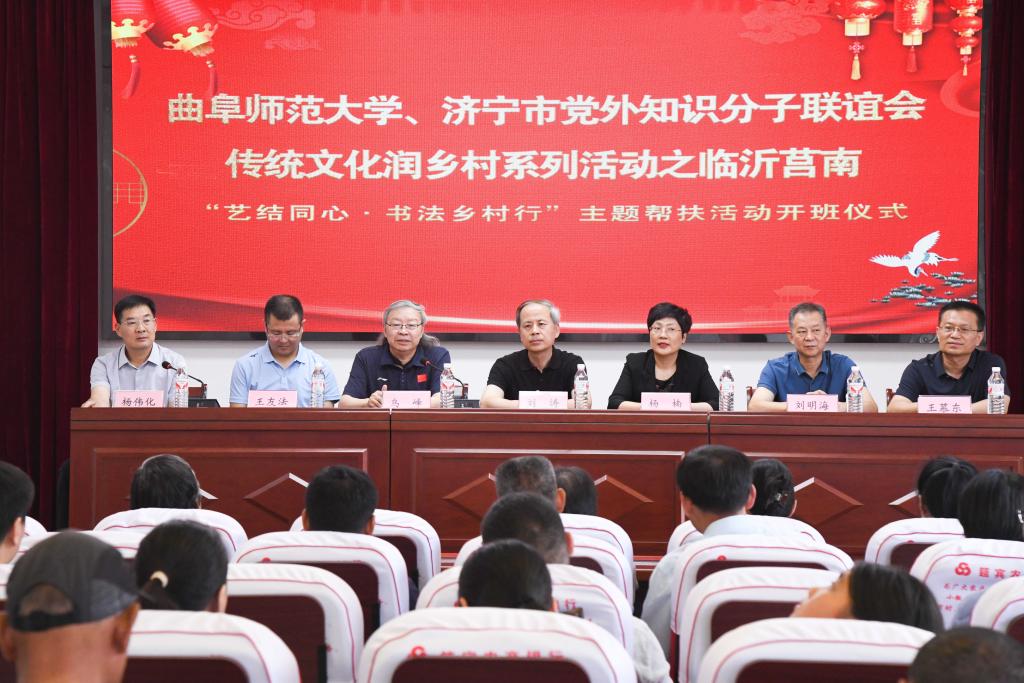 党委统战部讯 7月9日,曲阜师大党外知识分子联谊会传统文化润乡村“艺结同心·书法乡村行”主题帮扶活动在临沂市莒南县筵宾镇启动。学校党委副书记刘涛出席活动。活动由莒南县筵宾镇党委书记杨伟化主持。...